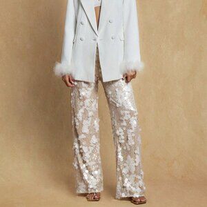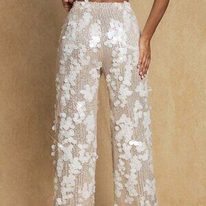 Glamorous Womens High Waist Sequin detailed Wide Leg Long Pants