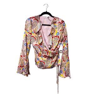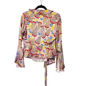 Glamorous for Anthropologie Floral Candy Pink Wrap Blouse Size M