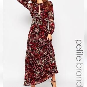 glamorous tall basso floral dress maxi size 8 pre-owned smoke cream like a brown burgundy or maroon color