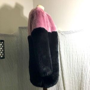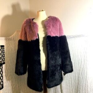 Black & Pink fawx fur fuzzy coat. Warm and cozy. Pre-owned in great condition. Please refer to pictures for best description and condition verification .