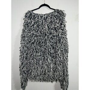 Glamorous|Urban Outfitters Shaggy Fringe Sweater Loopy Knit Black/White M/L