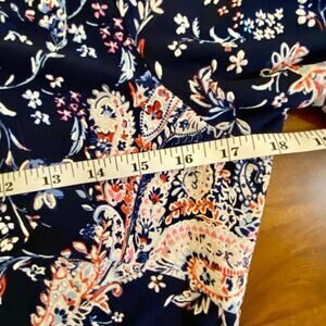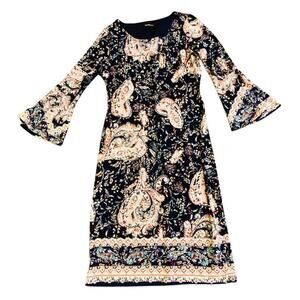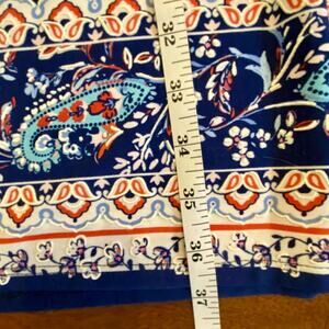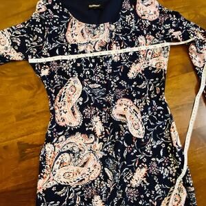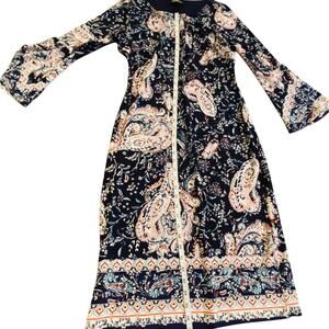 Stylish dress with vibrant patterns. Features blue and pink tones.