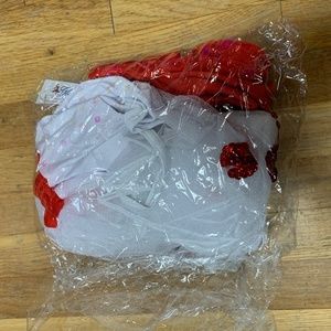 Size X-Small Adult. White dress with attached red cap sweater with music note appliqué