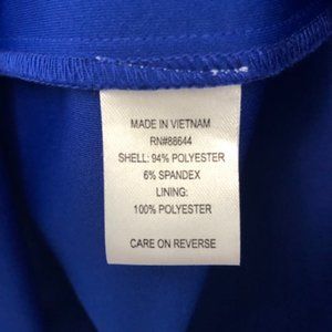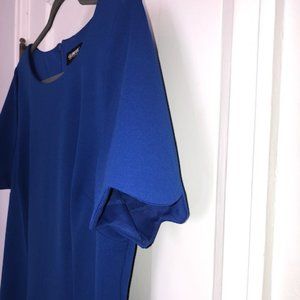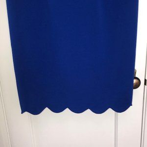 Royal Blue sheath style dress, size 14, scalloped hem line and sleeves. Very flattering style.