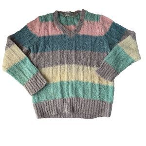 Glamour Knit Striped Pastel V Neck Sweater Size Small