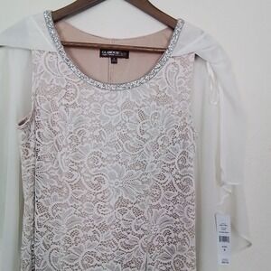 Glamour Nights Special Occasion Sleeveless Lace Dress Size 6 White Rhinestone Chiffon Shawl