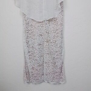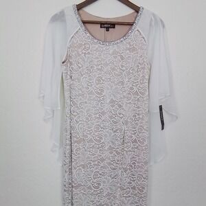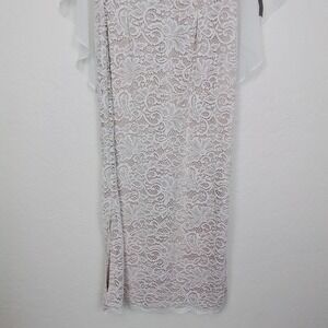 Glamour Nights White Size 6 Round Neck Lace Side Slit Midi Dress Flutter Sleeve