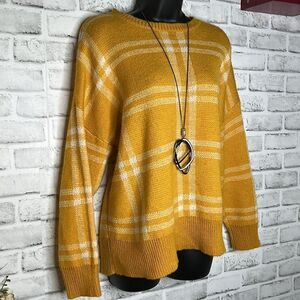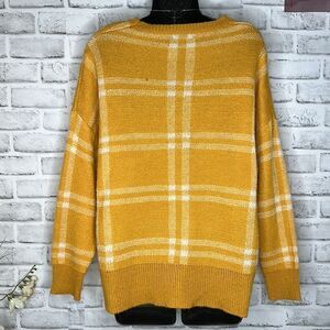 Glamour Plaid Oversized Knit Sweater Top Yellow Size Medium