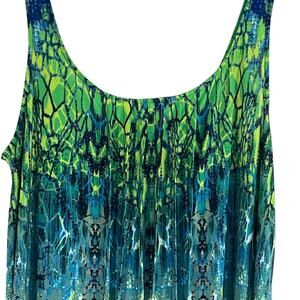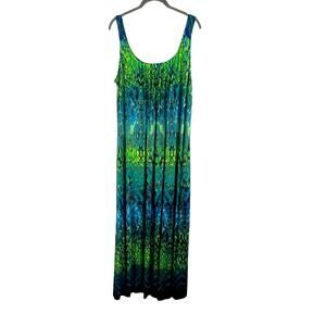 Gorgeous Flowy and Stretchy Maxi Dress. Beautiful graphic print in vibrant greens, blues and turquoise. Dress it up or wear it casually. Great go-to dress for Summer ! Excellent Condition. Polyester/Spandex. Machine Wash.