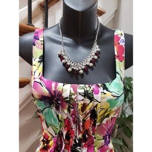 Glamour Womens Multicolor Floral Sleeveless Square Neck Knee Length Dress Size 8.