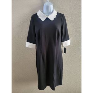 Glamour Women's Black Short Sleeve Scallop Peterpan Collar Shift Dress Size 8NWT