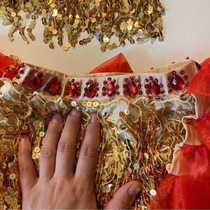 Glamour dance costume 2 piece red jewel gold fringe tutu dress small child SC