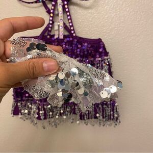 Glamour dance costume purple sequin gems rhinestone fringe embellished child M/L