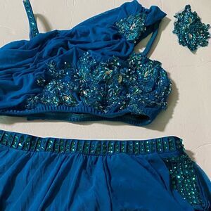 Glamour solo 2 piece dance costume teal blue lyrical embellished bling MA adult
