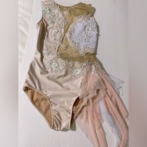 Glamour solo dance costume blush pink lace lyrical rhinestones SA-Small adult