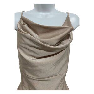 Glare Womens Size M Cowl Neck Beige Midi Slip Dress Bodycon Backless Formal