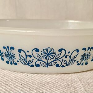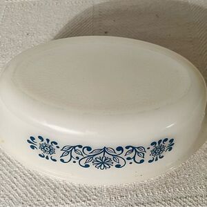 Glasbake 1 Qt Oval Casserole w/ Blue Daisy Floral Design.Used As Prop On TV Show