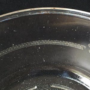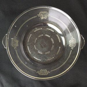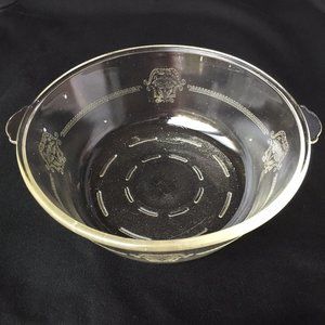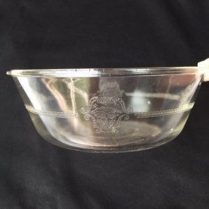 Glasbake Casserole Dish Clear Glass Serving Bowl Etched Crest Handles Vintage
