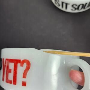 Glasbake Milk Glass Soup Bowl *Is It Soup Yet?* Handle J-2711 Set Of 3 Mugs