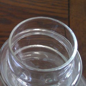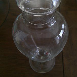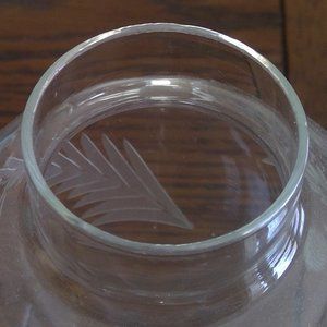 Vintage Clear Glass Apothecary Jar with Etched Leaves and Berry Design. Excellent vintage condition, with no chips or cracks!