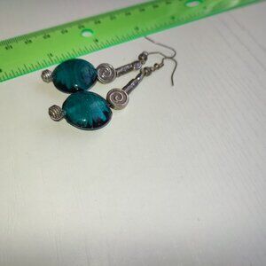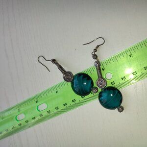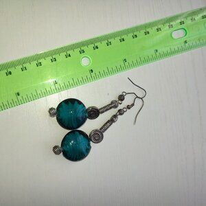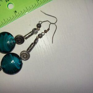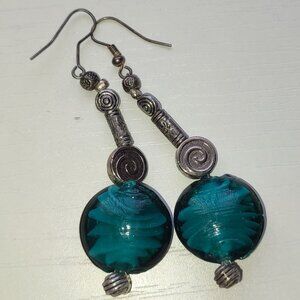 Glass Art Celtic Earrings Vintage Style Turquoise Aquamarine Primitive Cool