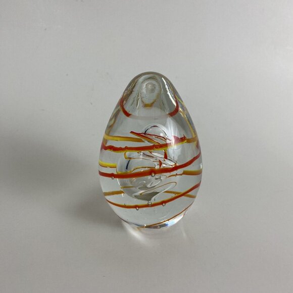 Glass Art Egg Paperweight Decoration 4" Tall Red Yellow Oval Shaped