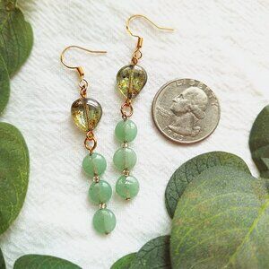 Glass & Aventurine Crystal Earrings, Woodland Fairycore Earrings, Cottagecore