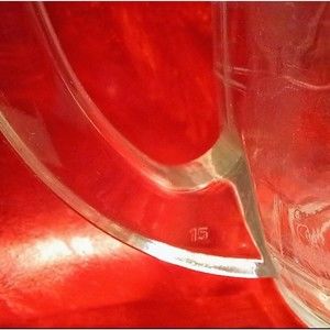 Clear glass barrel style mug/cup with frosted or etched world map around diameter. Has small crack at the lip, as pictured. Please refer to all pictures as description of condition. Identical to millennium glasses, without the lettering around rim. Approx... measurements 5" tall with 4" diameter..