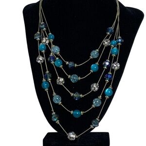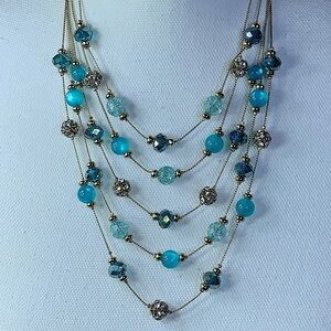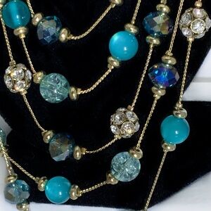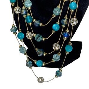 Layer Necklace Glass Beads Crystals Turquoise Blue Emerald Tones NWT