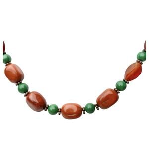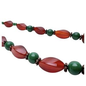 Glass Bead Fashion Necklace Orange Green Quartz Glossy Smooth Stones Artistic