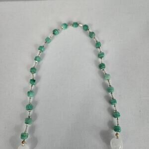 Glass Beaded Necklace with Square Sea Green Beads & White Glass Cut Beads