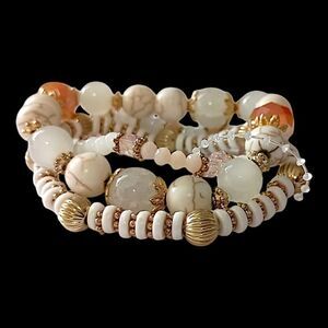Glass Beaded Stacked Bracelet Rows Beads Floral Neutrals Y2K Boho Fairy Indie