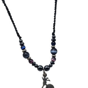 Black Purple Glass Beads Kokopelli Pendant Braided Cord Necklace