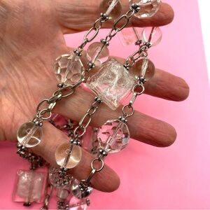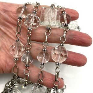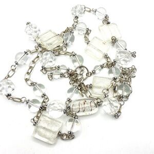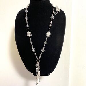Glass Beads Silver Tone Long Necklace With Tassel. Measures approx 41"+3" extender. An addition 4" dangle/tassel of chain and glass beads. Lovely glass beads are in amazing condition, some round faceted beads and focal art glass beads, Lovely long necklace. #12
