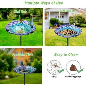Upgraded Garden Stake & Easy to Install: Our glass birdbath comes with thickened poles for added stability; The components of the birdbath are easy to install without the help of extra tools, just follow the assembly instructions to tighten all parts