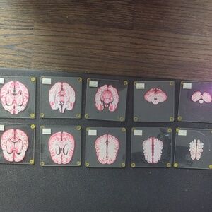 Unique glass coasters (10 in all) featuring a brain design. Perfect for adding a touch of science to your decor.