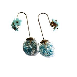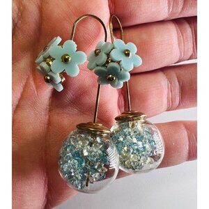 Glass Bubble Earrings With Floral Accents & Gold Hooks