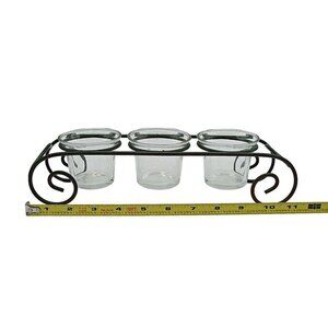 Vintage Glass Candle Holder 3 Votive Iron Scroll Mantle Staging Decor Housewarming 11X3"