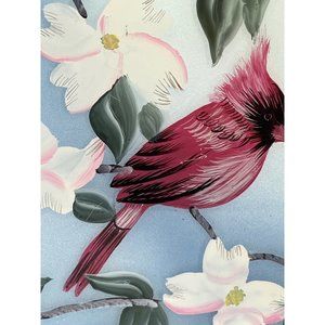 Beautiful painted glass Candle Holder with a Cardinal on the branch of a bloomed apple tree.