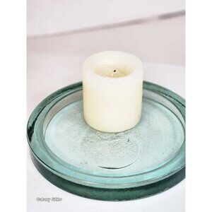 Glass Candle Holder Plate 8.5 in OD Green Blue colored seaside Holiday decor