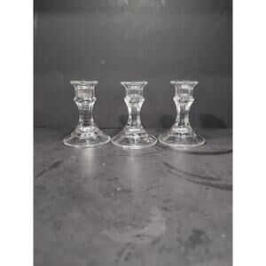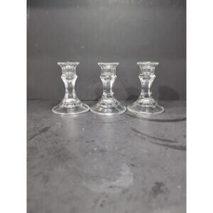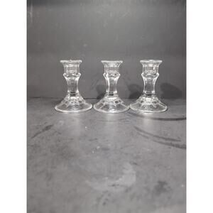 Glass Candlestick Set of 3, Pillar Candleholders, Holders, Vintage Table Decor