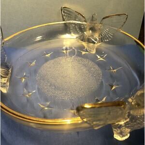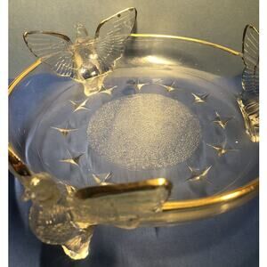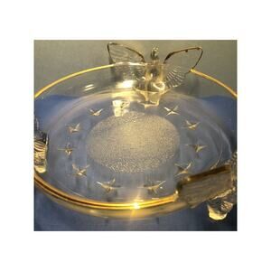 Vintage American Eagle 3-Footed Glass Candy Dish Bowl Embossed Stars Gold Trim.
