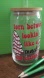 Glass Christmas cake style tumbler with glass straw. Includes holiday-themed pens with green and red accents.