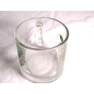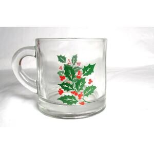 Glass Christmas Mug 8 Ounces Holly and Berry Design Holiday Cup Vintage 1960s