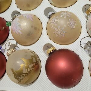 This vintage lot of 24 glass Christmas ornaments by Rauch Ind. features a frosted, kitschy design perfect for adding a nostalgic touch to your holiday decor. Made in the 1980s in the United States, these medium-sized round ornaments are ideal for collectors of vintage holiday decorations. Each ornament is hand-blown glass with a multicolor design, showcasing a Christmas theme that is sure to bring charm to any tree. The ornaments come in their original box, making them a special addition to any holiday ornament collection.
