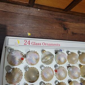 Glass Christmas Ornaments VINTAGE Lot 24 pcs boxed Rauch Ind. Frosted Kitschy