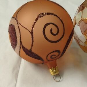 Glass Christmas Ornaments Hand Painted Gold Brown and Bronze colors