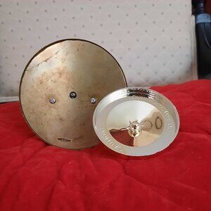 This Christmas music box plays We Wish You a Merry Christmas while the tree turns(see video). It was purchased several years ago at Macy's in NYC. It measures 8"H with a circumference of 12.5" around the gold base. The base has some blemishes which I have tried to capture in the pictures.