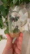 Real Perisama humboldtii butterfly specimen in 3.75” glass cloche. Decorated with quartz crystals, crystal mushroom, blue fluorite chip and moss. Handmade.