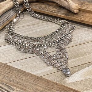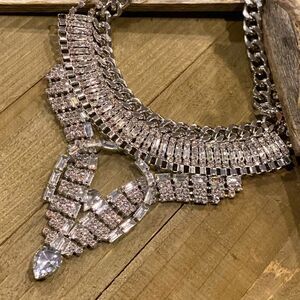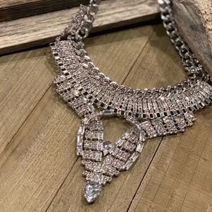 Stunning Silver Plated Art Deco Geometric “Arrow” Crystal Rhinestone Statement Necklace!!